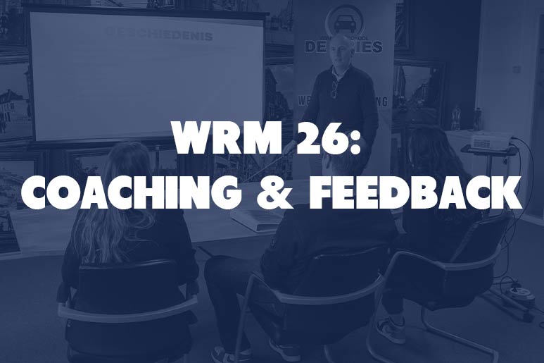 Deze WRM-bijscholing gaat over Coaching en feedback geven. De rijinstructeur wil zijn leerling altijd graag iets uitleggen en voordoen omdat de rijinstructeur in de veronderstelling is, dat dit sneller gaat en het hem controle geeft. Niets is minder waar. Als je de leerling gaat coachen, zal dit in het begin wennen zijn voor de leerling, hij heeft namelijk behoefte om aanwijzingen te vragen om iets goeds te willen doen in de ogen van de rijinstructeur in plaats van in zijn eigen ogen. Het kan zelfs beangstigen om zelf iets te moeten uitzoeken. Een goede coach reageert hierop door situaties uit te zoeken waarin het zelf uitzoeken geen kwaad kan en door gerust te stellen. Hij is dan zelf ook ontspannen: denk aan adem, toon en houding. De ervaring leert dat de eerste lessen inderdaad in de ogen van de rijinstructeur zeer weinig opleveren, maar na een les of 6 á 7 pikken de meeste leerlingen dit op en gaat het (nu meer zelfstandiger) leren vaak verrassend snel.